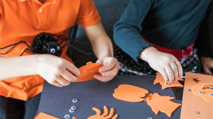 Skip the carved pumpkins (or maybe you ran out of time to do this before Halloween), but have no fear – try these no-mess alternatives. Paint some spooky faces on jars, draw pumpkins on orange construction paper, or wrap cans in orange paper for a modern or last-minute twist on the classic jack-o’-lantern.