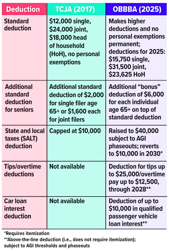 Employees and self-employed individuals may deduct up to $25,000 per year of qualified tips, provided they work in an occupation the IRS views as “customarily and regularly” receiving tips on or before December 31, 2024. This deduction is available to taxpayers whether they claim the standard deduction or itemize.